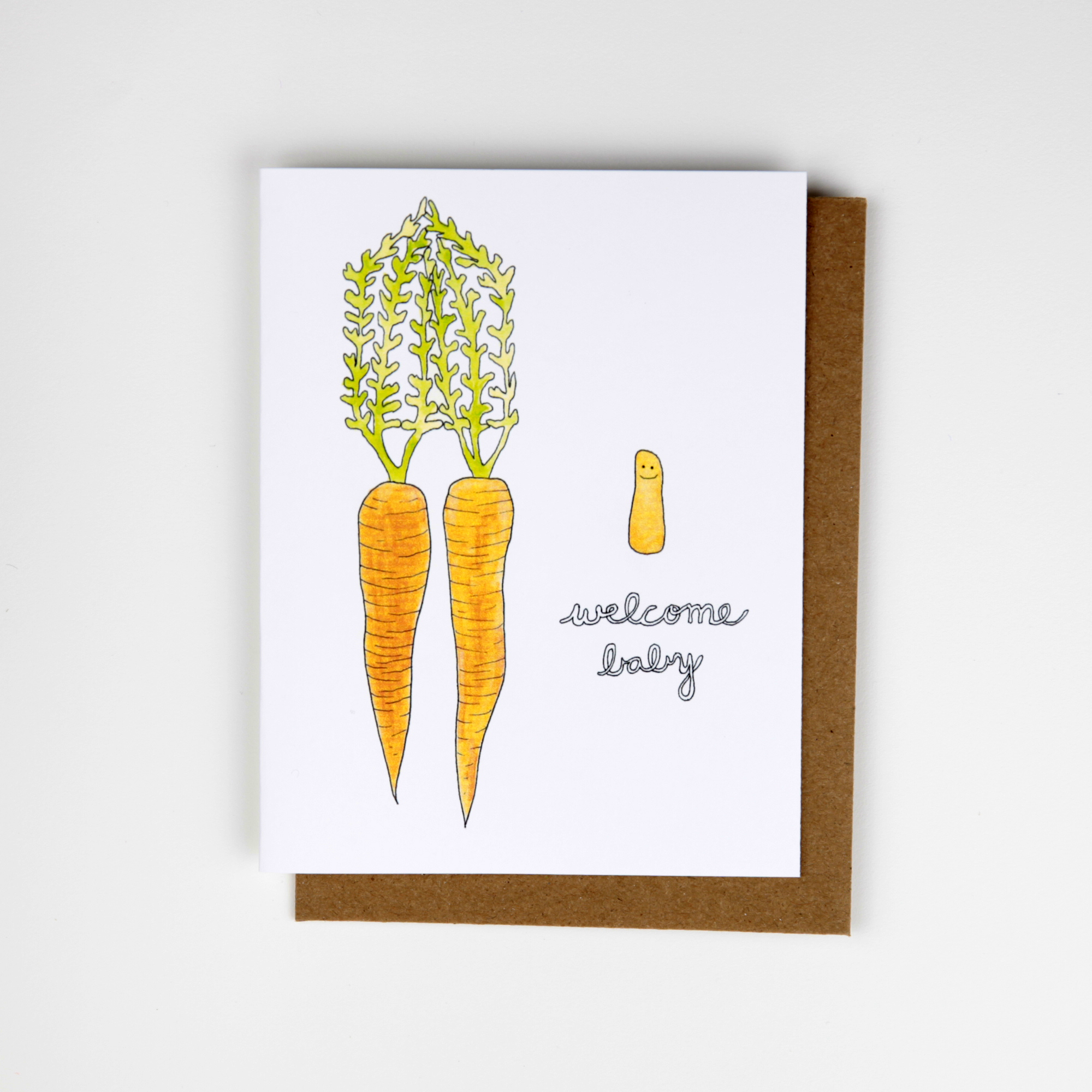 Baby Carrot Welcome Baby Card / New Baby Congrats / Expecting Card
