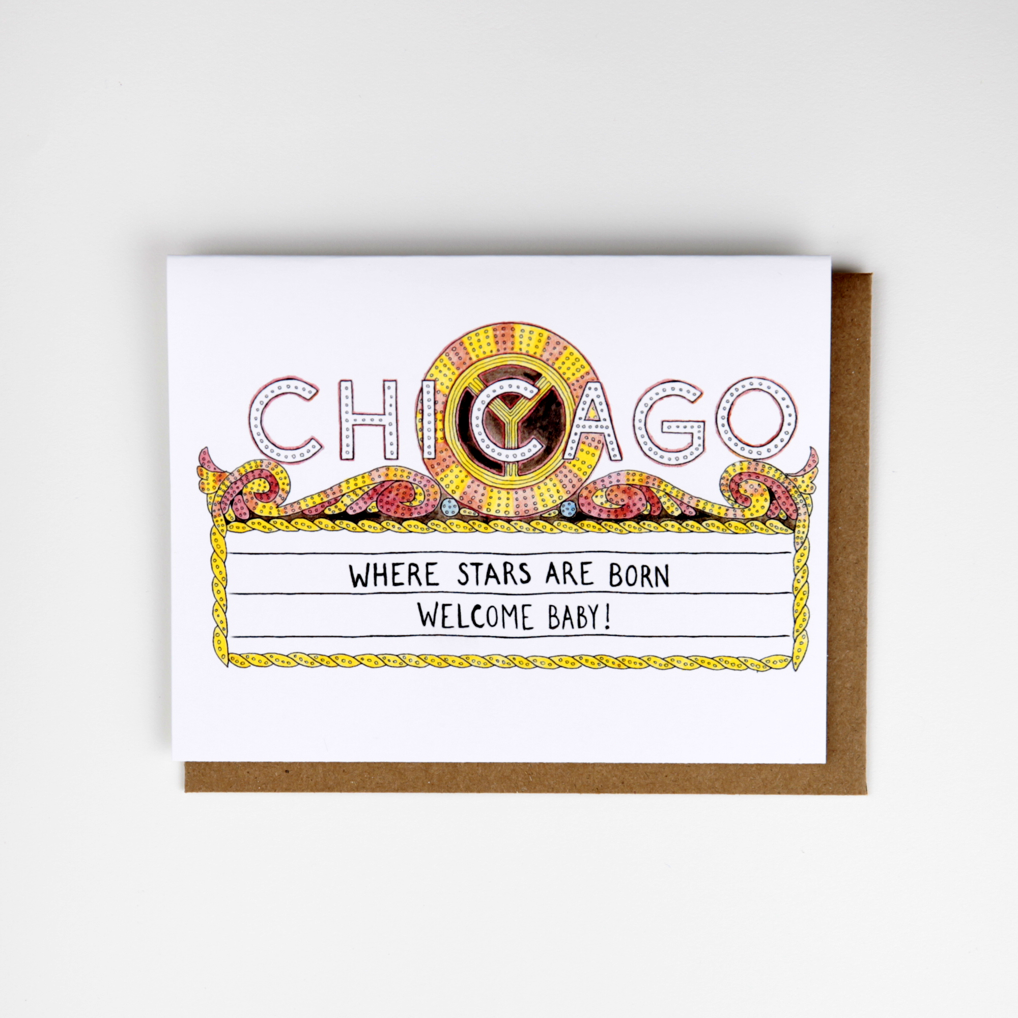 Chicago Where Stars Are Born New Baby Card / Chicago Theatre / Welcome Baby