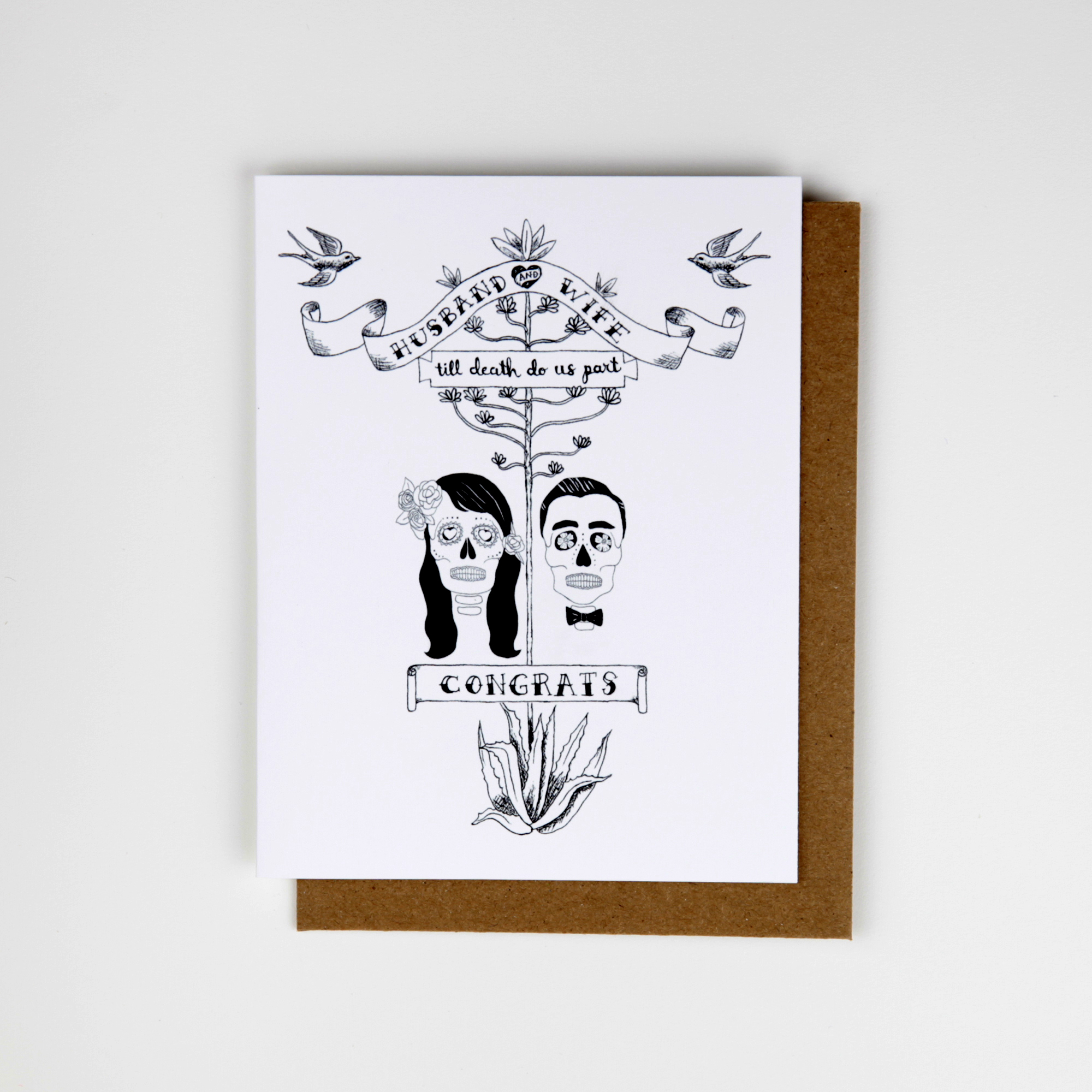 Skull Tattoo Wedding Card / Dia de Los Muertos / Skeleton Bride and Groom